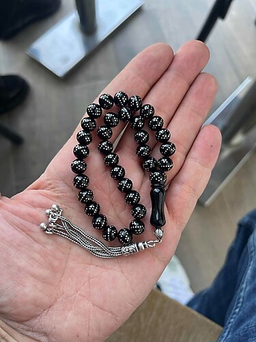 925 ayar gümüş çakımlı ve gümüş püsküllü, 1. sınıf orjinal Erzurum oltu tesbih.