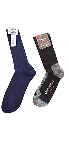 2 Adet Erkek Soket Çorap: Yeni ve etiketlidir. Kikstar Çorap: Bayanlara da olur. %80 Koton, %17 Polyamid, %3 Likralıdır. Toplam uzunluk 39 cm.-Topuğa kadar uzunluk 20 cm.-Topuktan yukarı uzunluk 21 cm.-Bilek girişinin tek taraftan eni 8.5 cm. (Esneme 3.5 cm.)-Alt tabanın ortadan eni 7 cm. (Esneme 6 cm.)-Ortadan tek taraftan eni 8 cm. (Esneme 6 cm.)-Üst ortadan eni 8 cm. (Esneme 4 cm.)'dir. Lateks Marka Lacivert Çorap: Yünlüdür. Toplam uzunluk 44 cm.-Topuğa kadar uzunluk 23 cm.-Topuktan yukarı 23 cm.-Bilek girişi tek taraftan 6 cm. (Esneme 8 cm.)-Ortadan eni 11 cm. (Esneme 5 cm.)-Alt tabanın ortadan eni 8 cm. (Esneme 6 cm.)-Üst ortadan eni 7 cm. (Esneme 7 cm.)'dir.
