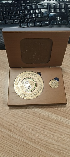 2020 YILI TÜRKİYE BAROLAR BİRLİĞİ 40. YILI HATIRA MADALYON + YAKA ROZETİ AHŞAP KUTUSUNDA Madalyon : 161,5 gr. 80 mm.
