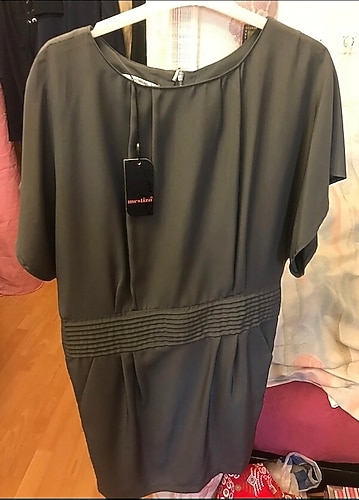 İlk elbise hatasız kullanılmamıştır. Mavi elbise birkez kullanılmıştır. Resimdeki minik defosu mevcut.