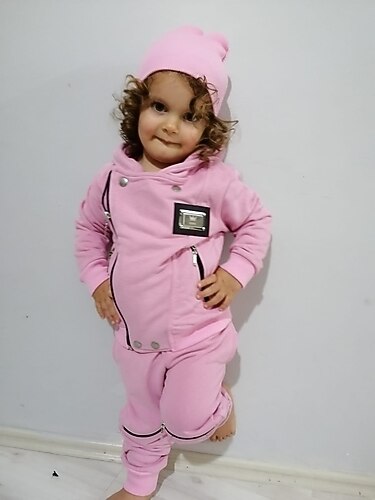 Sıfır üeün, 3 parça, çıtçıt kapama, traşlı 3 ip kumaş, yaşlar /3.4/4.5/9.10/11.12 renk pembe