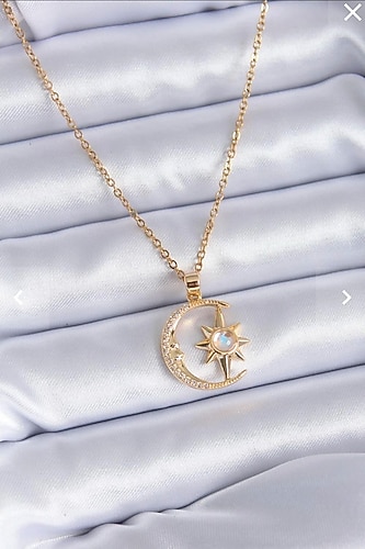 316L Çelik Gold Renk Zirkon Taşlı Ay Yıldız Model Kadın Kolye