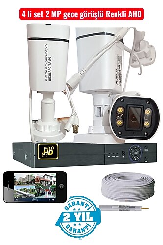4 KAMERALI SET 2 MP SONY LENS GECE GÖRÜŞLÜ RENKLİ WERM LED HD CEPTE IZLEME YÜKSEK ÇÖZÜMLÜ YÜZ TANIMALI HAREKET ALGILAMA SANSÜRLÜ 2 MEGAPİKSEL FULL HD KAMERA NET GÜRÜLTÜ SU GEÇİRMEZ TUZ DAYANAKLI HEM İÇ MEKEN HEM DİŞ MEKEN OLARAK KOLANA BİLİRSİNİZ