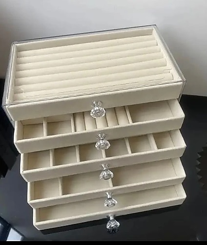 5 çekmeceli bej renkli takı kutusu Sifir orjinal paketinde stoktan teslim