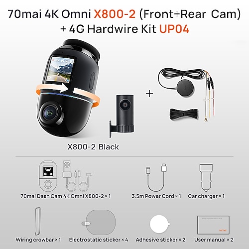 70mai Omni X800 4K ön kamera, arka kamera ve orijinal 4G