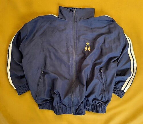 90’lar stilini yansıtan, lacivert renkli ve yıldız detaylı çok şık bir parça! Hem spor hem de sokak stili için ideal.