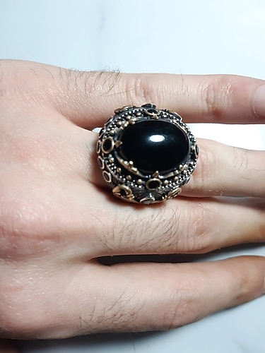 27 Gram ağırlığında 925 Ayar Gümüş Erkek Yüzük Üzerindeki Taşlarda dökülme hata yoktur Alıcısına hayırlı olsun.