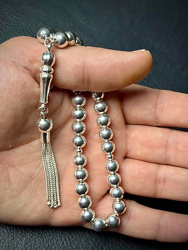 👉 8,2x7,6mm ölçülerinde 👉 31,75 gram ağırlığında 👉 Tamamı 925 ayar gümüş tesbih (püskülü, imamesi, habbesi ve ipi 925 ayar gümüştür)