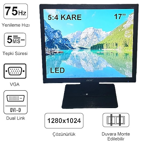 ACER V176L 17" LED Kare Monitör VGA DVI-D Girişli 1280 x 1024 75Hz 2. El Temiz 3 Ay Garantili