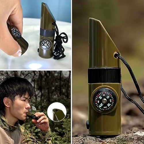 7si 1Arada Acil durum Düdüğü El feneri Termometre Pusula Büyüteç Depolama Bölmeli
