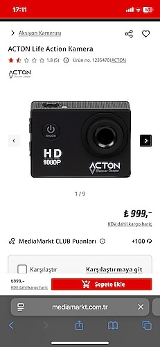 ACTON Life aksiyon kamerası 1080p