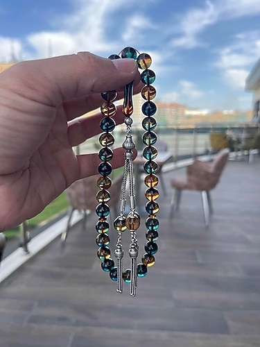 925 ayar ağır gümüş püsküllü, küre kesim ateş kehribar tesbih.