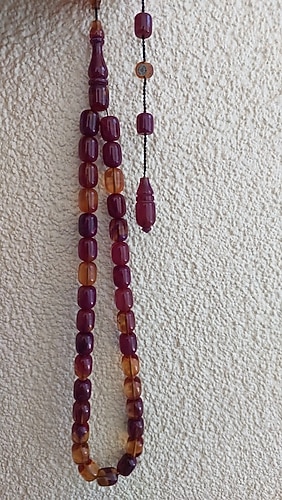 Ahmet Damar Usta Beyzi Kesim Kahve ve Açık Kahve Tonlarında Sıkma Kehribar Tesbih.