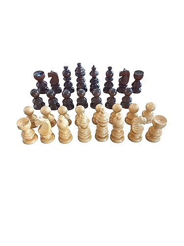 Ahşap Satranç Taşı Takımı: 31 adettir. Kahverengi 1 piyon kayıptır. Ahşap verniklidir. 16 açık renk & 15 koyu renktir. #santranç taşı takımı #ahşap santranç taşı takımı #santranç taşı