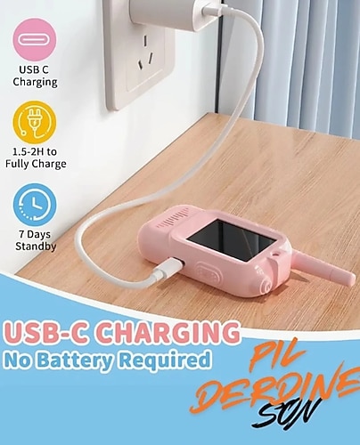 Çocukların güvenliği için tasarlanmış, ikili smart görüntü ve konuşma özelliği ile ebeveynlerin çocuklarıyla her an iletişim halinde olmasını sağlar.; ; 4 farklı ses efekti seçeneği ile çocukların eğlenceli bir deneyim yaşamasına olanak tanır.; ; Otomatik çalışma özelliği sayesinde kullanım kolaylığı sunar ve pil ihtiyacını ortadan kaldırır.; ; .; ; Türkiye'de ilk görüntülü konuşma özellikli telsiz ; Çekim mesafesi engebeli alan için 50 Metre Düz alanda 150 Metre ; Herhangi bir Wifi gerektirmez direk açıp kullanabilirsiniz.; ; M tuşuna 2 sn Basılı tutarak ses efektini ayarlayabilirsiniz; Kutu içerisinde 1 adet pembe 1 adet mavi olmak üzere 2 adet telsiz çıkar