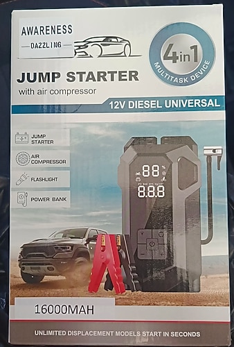 yeni ürün 4 ü birarada akü takviye, lastik şişirme, powerbank, elfeneri(ikaz ışıgı, sos)