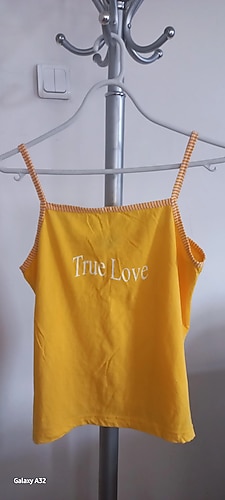 Anny N Marka Bayan Askılı Tshirt: Lekesi ve yırtığı yoktur. İyi durumdadır. %100 kotondur. M bedendir. Ancak iade olmadığından verdiğim ölçülere göre alım yapınız. Boy askıdan itibaren 57 cm.-Koltuk altından itibaren boyu 39 cm.-Koltuk altından koltuk altına tek taraftan eni 47 cm. (Esneme 5 cm.)-Orta kısımdan tek taraftan eni 51 cm. (Esneme 6 cm.)-En altından tek taraftan eni 56 cm. (Esneme 7 cm.)-Omuz askı kalınlığı 1 cm.-Kol oyuntusu 22 cm. (Esneme 3 cm.)-Arka askı uzunluğu 19 cm.'dir. #bayan askılı tshirt #kadın askılı tshirt #sarı askılı tshirt #sarı kadın askılı tshirt #sarı bayan askılı tshirt