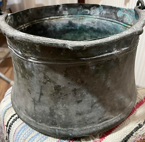 Antika bakır kazan dekoratif obje dekoratif obje detaylar görselde