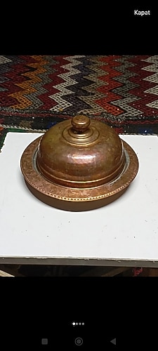 Antika bakır sunumluk tabak ve kapağı ölçüleri resimlerde mevcut ağır ve güzel üründür isteyene alt tabak bi adet daha mevcut aklınıza takılan soruları sorup bilgi alabilirsiniz iade yoktur alana hayırlı olsun