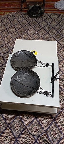 antika çok eski kefeli terazi bol bol damga ve yazılar mevcut fakat sanırım paslı diye siyaha boyanmış tutma yerleri pirinç kefeleri metal elcik kısmı esksik aklınıza takılan soruları sorup bilgi alabilirsiniz dolabımı ziyaret ederek farklı ürünler görebilirsiniz 😇 alana hayırlı