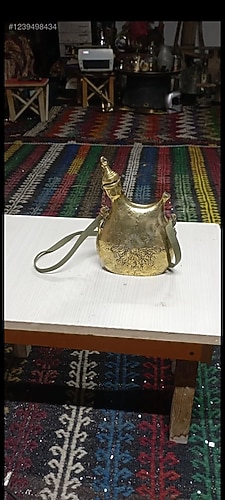 Antika büyük boy işlemeli pirinç su matarası bir kilodan fazla 23 cm boyunda dekoratif su matarası askı kayışı üzerinde kapak yani tıpa kısmı sadece üzerine konularak duruyo sanırım o zaman sadece dekoratif amaçlı yapılmış görseli çok güzel aklınıza takılan soruları sorup bilgi alabilirsiniz dolabımı ziyaret ederek farklı ürünler görebilirsiniz iade yoktur alana hayırlı olsun