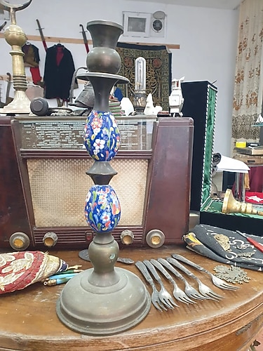 40 cm Kutahya porselen temalı şamdan pirinc ve metal karisimi