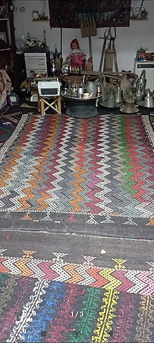 antika uşak yöresine ait kök boyalı el dokuma keçi kılından mamul kilim (kıl çul) diye de geçer 3mx 2m boynda kondisyon olarak oldukça güzeldir zamana bağlı yıpranmalar mevcut aklınıza takılan soruları sorup bilgi alabilirsiniz dolabımı ziyaret ederek farklı ürünler görebilirsiniz iade yoktur isteyene aynısından 1 adet daha mevcut alana hayırlı olsun