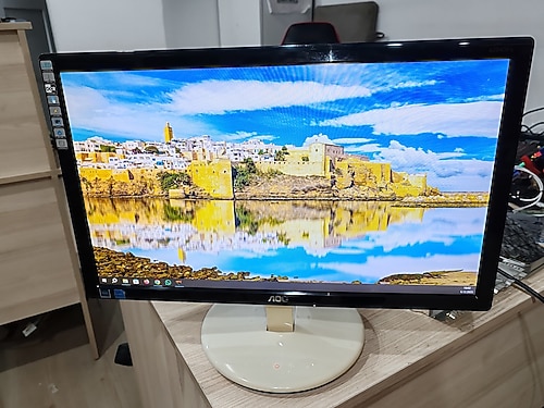 SORUNSUZ ÇALIŞMAKTADIR. EKRANDA 2. RESİMDE GÖRÜNEN ZARARSIZ BİR İZ VAR. YANINDA 12V GÜÇ ADAPTÖRÜ DAHİL VGA KABLO YOKTUR