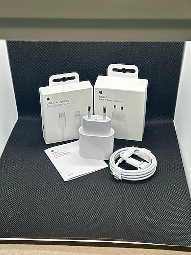 Apple 20W USB-C güç adaptörü ve 1 metrelik USB-C'den Lightning'e şarj kablosundan oluşan set. Cihazlarınızı hızlı ve güvenli bir şekilde şarj etmek için idealdir.