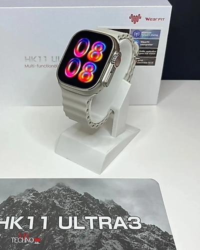 HK11 Ultra 3 Akıllı Saat Özeti 📱 Ekran & Donanım 2.02" AMOLED ekran (410×494 çözünürlük) SF32LB525 işlemci 260mAh pil (kablosuz şarj, ~7 gün kullanım) IP67 suya dayanıklılık Malzeme: Kirsite gövde + silikon kordon 📞 İletişim & Medya Bluetooth 5.3 (tek tıklama bağlantı) Bluetooth arama desteği Yerel müzik çalma + ses kaydı (4GB hafıza) TWS kulaklık bağlantısı ❤️ Sağlık & Spor Adım, uyku, kalp atışı, tansiyon ölçümü Hareketsiz hatırlatma Çoklu spor modu 🤖 Akıllı Özellikler Yapay zeka çeviri (20+ dil, Türkçe dahil) AI hatırlatıcılar ve asistan Dinamik ada arayüzü Saat yüzü, uygulama, oyun desteği E-kitap (TXT formatı) Fotoğraf çekme, senkronizasyon, albüm yükleme 📌 Diğer İşlevler Pusula, kronometre, takvim, hava durumu Mesaj ve çağrı bildirimleri Müzik/fotoğraf kontrolü QR kod, Alipay, kaybolma koruması El feneri, çalar saat 📲 Uyumluluk Android 4.4+ & iOS 8.0+ WearFit Pro uygulaması