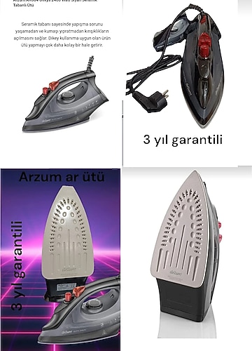 Arzum giri ütü, şık tasarıma sahip ve 3 yıl garantilidir. Güvenilir performans sunar.Arzum Olivya AR684 seramik tabanlı 2400 w buharlı ütü Arzum dikey ütü kireç önleme özelliğine sahiptir Aynı zamanda kıyafetlerinizi yakmayan özel seramik zeminle kaplanmıştır saten, pamuk ya da diğer tüm kıyafet türlerinde üstün performansgösterir.ütü damlama emniyetine sahiptir Seramik tabanlı ütü kendini temizleme ve aynı zamanda kireç önlemeniteliği taşır ütü lekesiz ve tamamen izbırakmayan ütü deneyimi sunar kurulum gerekmez Güç kaynağına bağlandığıandan itibaren kullanıma hazır hale gelir kırışıksız sonuçlar ve ultra performans almanızısağlar 100-200 arası şok buharlı ütü daha hızlı şekilde kırışık giderme ve kolayütüleme deneyimi vadeder. ütü ile tek seferde çok sayıda ütü işlemi yapmak mümkündür Su damlatmayan ütü, kıyafetlerinizi ürün sıfır 3 yıl garantili ürün