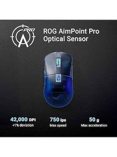 ROG AimPoint Pro optik sensör : Track-on-glass teknolojisine sahip 42.000 dpi optik sensör.