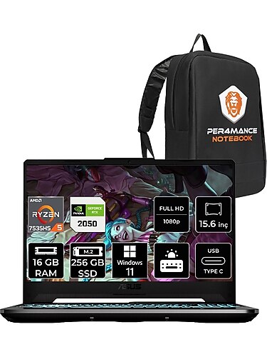 Asus Tuf Gaming A15 Amd Ryzen 5 7535HS 16GB 256GB SSD RTX2050/4GB 15.6" Fhd 144Hz Windows 11 Home