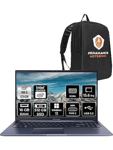Asus Vivobook 15 Intel Core I5 1235U 16GB 512GB SSD 15.6'' Fhd W11P Taşınabilir Bilgisayar