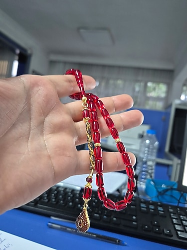 Ürünün manevi bir hikayesi olan, hediye olarak gelen bir tesbihtir. (Burada anlatmak lüzumsuz kalır diye kısa kestim) Ağır bir tesbihtir. Zira gümüş püsküllüdür. Halil Kalaycı Tesbihçilik özelinde tasarlanan püskülü ve tesbih habbesidir. İşlemesi çok kibar, çekimi çok güzel gelen bir üründür. Satma sebebim yok, kafam esti satmak istedim. Halil Kalaycı Tesbihçiliğin reonunda 8 bin Edir bu ürün. Damla vs. değildir ürün, halis ateş kehribardır. Bayadır çekiyorum, ufaktan rengini aldı. Sağlıcakla kaldın, selametle.