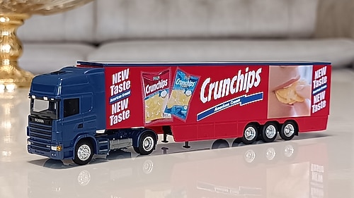 Avrupa otoyollarının en karizmatik krallarından biri... Efsanevi Scania TL400, canlı ve nostaljik "Crunchips" giydirmesiyle, koleksiyonuna renk ve keyif katmaya geliyor. Lütfen açıklamayı dikkatlice okuyunuz.