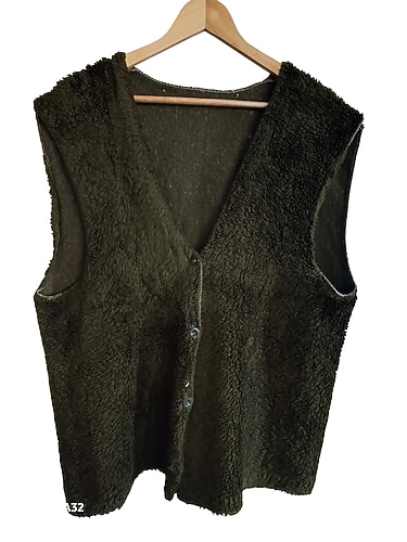 Bayan Kürk Yelek: Lekesi ve yırtığı yoktur. Sağ yaka içe kıvrılmış sekildedir resimde eğri gözükebilir. Beden yazmıyor L bedene olur diye düşünüyorum. Ancak iade olmadığından verdiğim ölçülere göre alım yapınız. Boy 70 cm.-Koltuk altından itibaren boyu 37 cm.-Koltuk altından koltuk altına tek taraftan eni 58 cm. (Esneme 4 cm.)-Orta kısımdan tek taraftan eni 57 cm. (Esneme 5 cm.)-En altından tek taraftan eni 57 cm. (Esneme 7 cm.)-Kol oyuntusu 34 cm. (Esneme 4 cm.)-Omuz 16 cm.-Kol girişinin tek taraftan eni 35 cm.(Esneme 5 cm.)-Yaka açıklığı 27 cm.-Düğme 1.5 cm.-İki omuz arası eni 53 cm.'dir. #yelek #bayan yelek #kadın yelek #kürk yelek #bayan kürk yelek # kadın kürk yelek