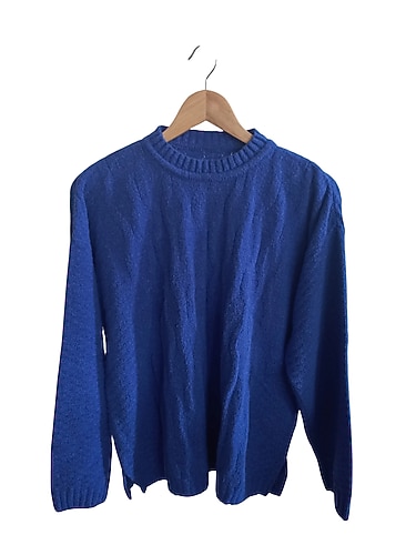 Bayan Örgü Kazak: Lekesi ve yırtığı yoktur. İki yandan yırtmaçlıdır. Örgüdür. Hafif tüylenmesi vardır. Beden etiketi yok. L/XL bedene olabilir, enden bayağı geniştir. Ancak iade olmadığından verdiğim ölçülere göre alım yapınız. Boy 62 cm.-Koltuk altından itibaren boyu 42 cm.-Koltuk altından koltuk altına tek taraftan eni 58 cm. (Esneme 10 cm.)-Orta kısımdan tek taraftan eni 57 cm. (Esneme 10 cm.)-En altından tek taraftan eni 55 cm. (Esneme 11 cm.)-Kol boyu 50 cm.-Omuz 19 cm.-Ense açıklığı 13 cm. (Esneme 4 cm.)-Bilek girişinin tek taraftan eni 10 cm. (Esneme 3 cm.)-İki omuz arası 47 cm.-Kol oyuntusu düz ölçüm 20 cm. (Esneme 3 cm.)-Yırtmaç 8 cm.'dır. #kazak #bayan kazak #kadın kazak