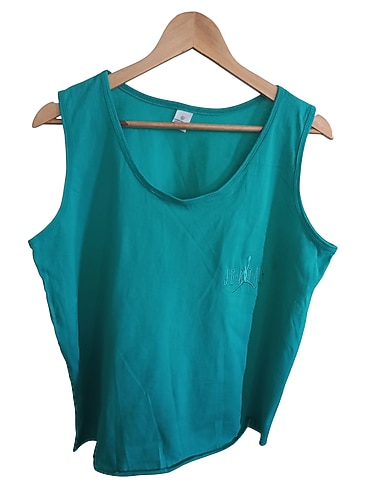 Bayan Yazlık Tshirt: Lekesi ve yırtığı yoktur. Sadece en alt kısmı kesilmiştir. Onun dışında iyi durumdadır. %100 Kotondur. XL bedendir. Ancak iade olmadığından verdiğim ölçülere göre alım yapınız. Boy 62 cm.-Koltuk altından itibaren boyu 42 cm.-Koltuk altından koltuk altına tek taraftan eni 56 cm. (Esneme 4 cm.)-Ortak kısımdan tek taraftan eni 55 cm. (Esneme 4 cm.)-En alttan tek taraftan eni 56 cm. (Esneme 6 cm.)-Omuz 6 5 cm.-Yaka açıklığı 12 cm.-Kol oyuntusu 22 cm. (Esneme 4 cm.)'dir. #bayan tshirt #kadın tshirt #tshirt #kadın askılı tshirt #bayan askılı tshirt #askılı tshirt