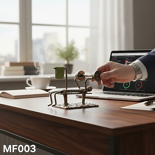 Bu el yapımı bench press figürlü metal heykel, fitness tutkunları için motivasyon ve estetiği bir araya getirir. Dinamik ve güçlü duruşuyla masa, raf veya çalışma alanlarında dikkat çekici bir dekoratif parça olarak öne çıkar.