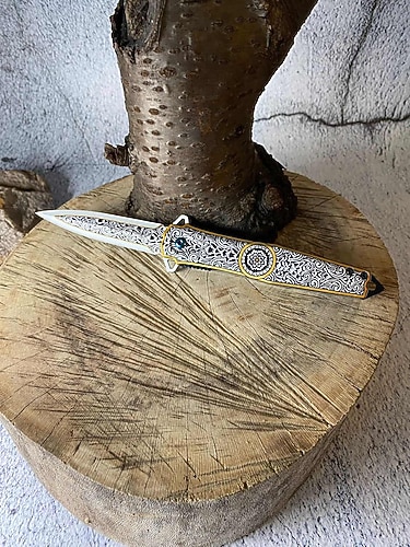 Desenli Büyük Boy 22,5 cm Yarı Otomatik kemer klipsli içten kilit şık çakı