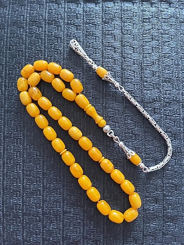 Bürokrat boy kapsül kesim sıkma Kehribar, bol hareli, ağır uzun 925 gümüş püskül, kral motif, hatasız habbeler ve delimler, alana hayırlı olsun