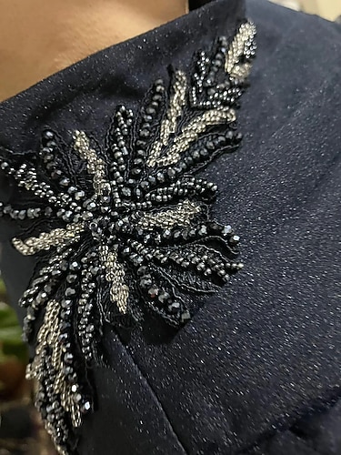 Boncuk işlemeli, lacivert bohem tarzda, gösterişli ve retro desenli broş, düğün için uygun.