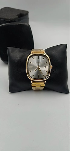 Vintage tasarım, gri-gümüş kadran, altın kasa ve kordon