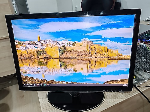 SORUNSUZ ÇALIŞMAKTADIR. EKRANDA 2. RESİMDE GÖRÜNEN ZARARSIZ BİR İZ VAR. YANINDA 12V GÜÇ ADAPTÖRÜ DAHİL VGA KABLO YOKTUR