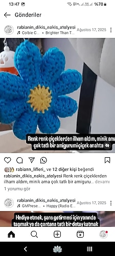 Zarif ve renkli tasarımıyla el emeği örgü çiçek anahtarlık.