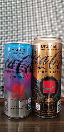 COCA COLA LEAGUE OF LEGENDS ULTIMATE LIMITED EDITION ZERO SUGAR 330 ML COCA COLA Y3000 YAPAY ZEKA LİMİTLİ ÜRETİM ZERO SUGAR 250 ML