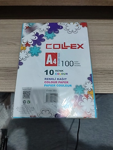 Collex marka, code: 1511, A4 boyutunda 100 yaprak renkli kağıttır. 10 renk Çeşitli renklerde kağıtlar içeren pakettir. Ofis ve okul kullanımları için idealdir. 210x297 mm