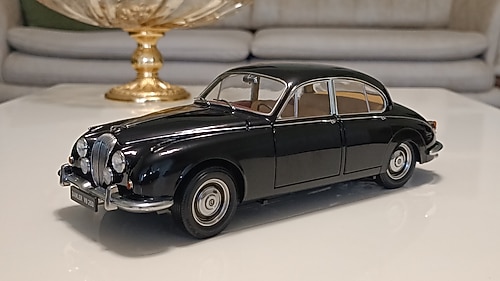 Daimler V8 250'nin siyah rengi, ona tam bir "Devlet Adamı" veya "Kraliyet Ailesi" aracı havası katıyor. Krom tamponlar ve o meşhur ön ızgara, siyah zemin üzerinde adeta parlıyor. Paragon'un işçiliği, özellikle jant tellerinde ve iç döşeme detaylarında zirve yapmış. Modelin limitli üretim olması ve 368 numarasını taşıyan sertifikasıyla gelmesi, onu basit bir oyuncak olmaktan çıkarıp, geleceğe miras bırakılacak bir koleksiyon objesine dönüştürüyor. Vitrininizin en ağırbaşlı köşesi için biçilmiş kaftan.