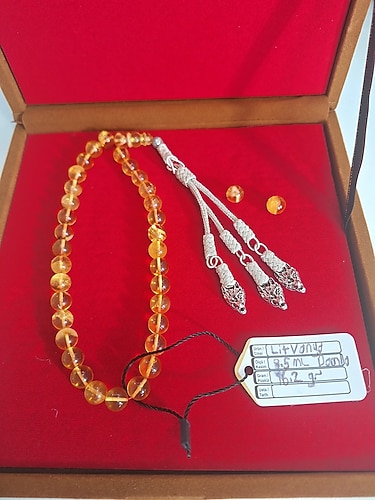 8.5 mm reçine kokulu 3' kurt başlıklı kazaz püsküllü 16.2 gram Damla ağırlığı iki yedek habbeli hatasız Litvanya Kaya Damla tesbih